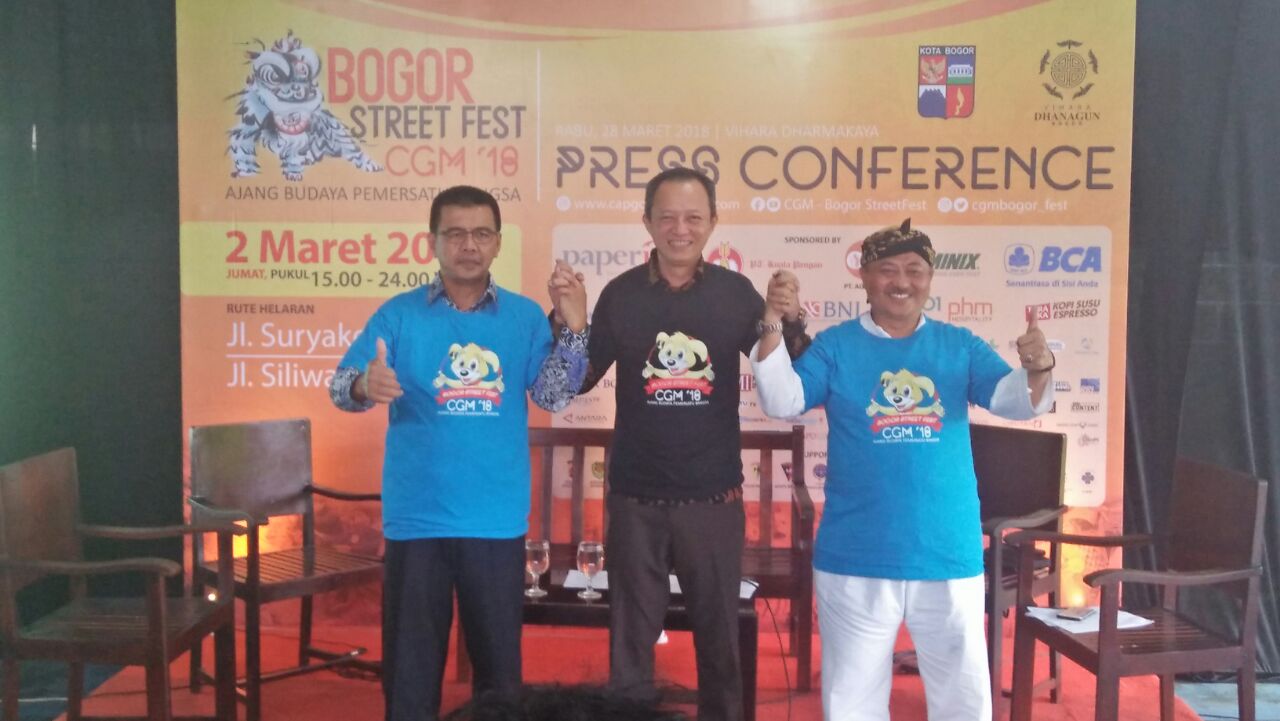 Bogor Street Festival atau Cap Go Meh (CGM) tahun 2018, akan segera dilaksanakan pada Jum’at 2 Maret 2018 mendatang. Beragam persiapan-persiapan dilakukan panitia untuk memeriahkan acara rutin tahunan tersebut. Selama kegiatan berlangsung, sepanjang Jalan Suryakencana sampai Sukasari akan ditutup.