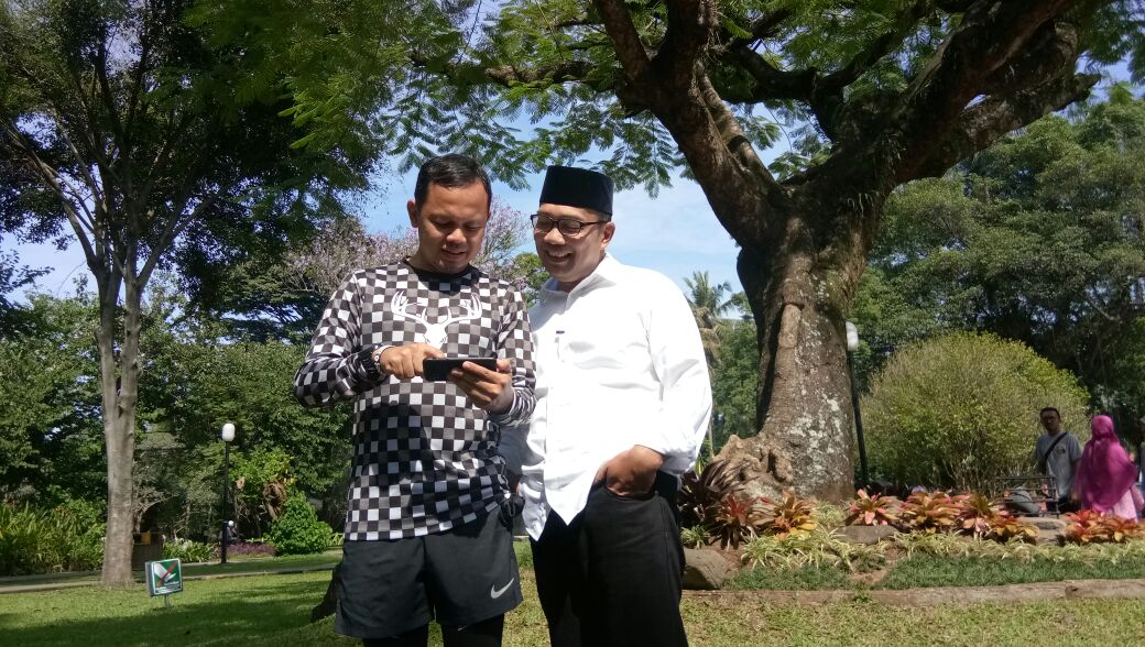 Calon Walikota Bogor Bima Arya Sugiarto secara tidak sengaja bertemu dengan Ridwan Kamil, sahabat karib yang kini mencalonkan diri sebagai Calon Gubernur Jawa Barat. Kedua karib itu bertemu di Taman Kencana, Bogor Tengah, Kota Bogor, Jum’at (16/3/18).