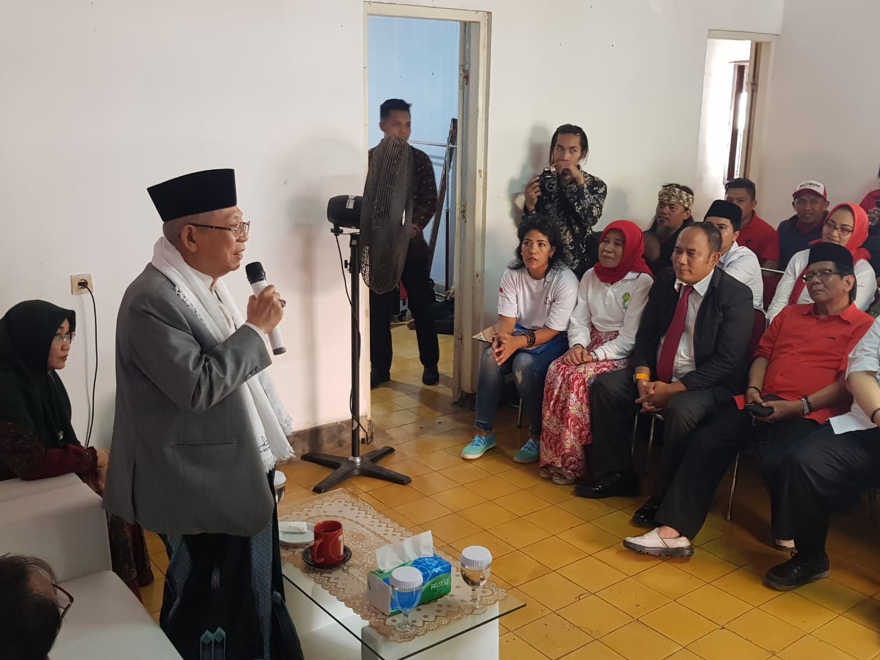 Safari Cawapres nomor urut 01 KH Ma’ruf Amin di Kota Bogor diakhiri dengan menemui para relawan yang tergabung dalam Rumah Kerja Jokowi-KH Ma’ruf Amin Kota Bogor di Jalan Ciremai Ujung.