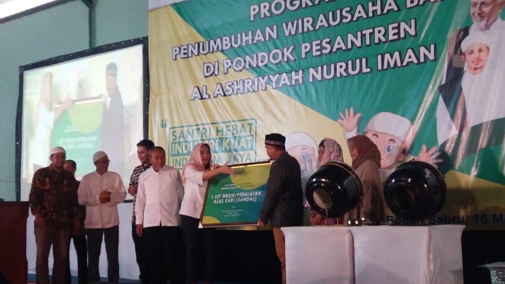 Kementerian Perindustrian terus mendorong pertumbuhan wirausaha industri baru dan pengembangan unit industri di pondok pesantren. Untuk itu, pemerintah melaksanakan program Santripreneur dalam rangka mengembangkan sumber daya masyakarat di lingkungan pondok pesantren, sehingga menjadi sarana pemberdayaan ekonomi masyarakat yang kali ini dilakukan di Pondok Pesantren yayasan Al Ashriyyah Nurul Iman (PPNI), Parung, Kabupaten Bogor melalui bimbingan teknis WUB IKM dan bantuan mesin/peralatan produksi alas kaki sandal.