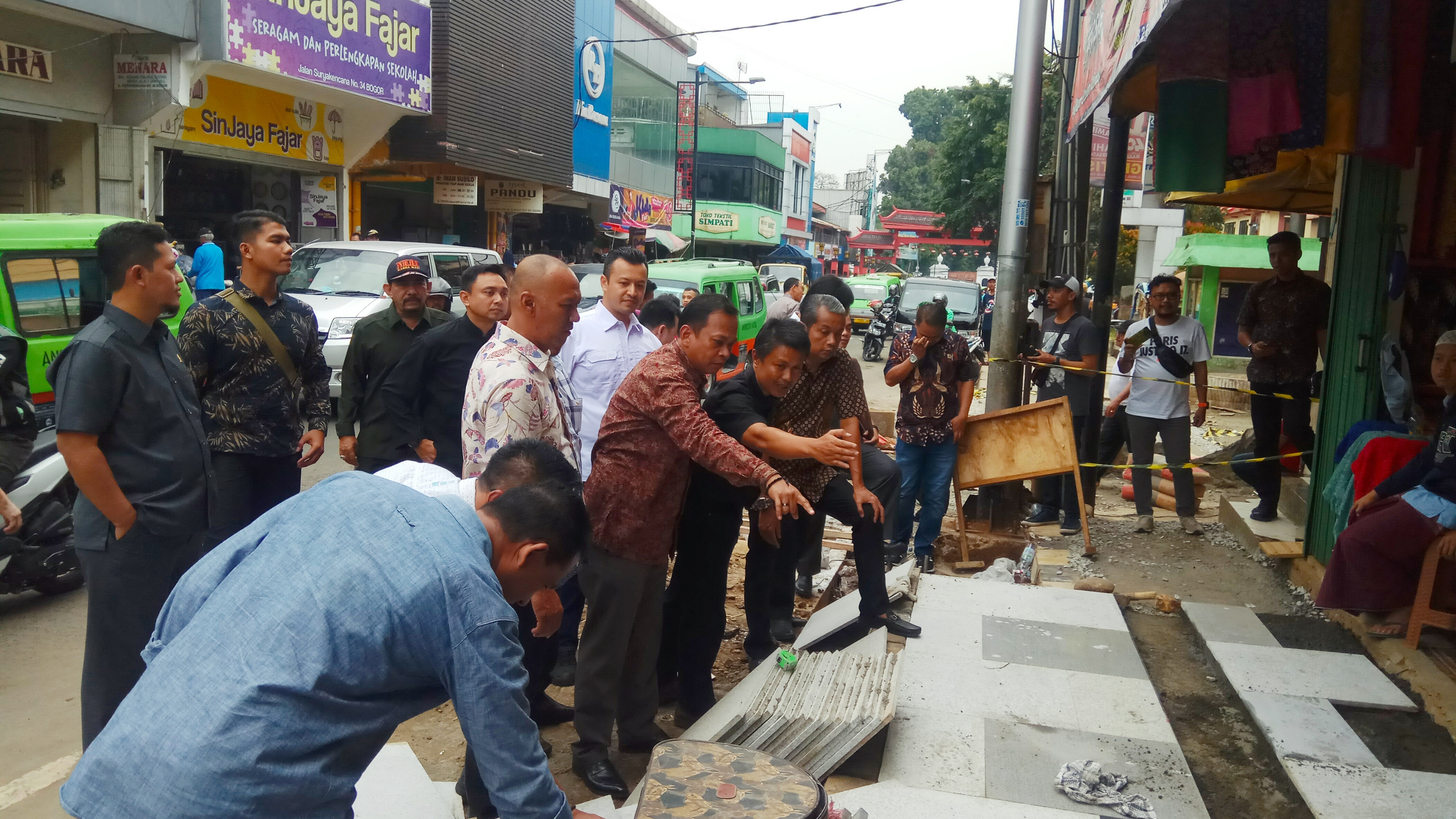 Komisi III DPRD Kota Bogor melakukan inspeksi mendadak (sidak) pembangunan pedestrian Jalan Suryakencana, Babakan Pasar, Bogor Tengah pada Rabu siang, 13 November 2019. Kedatangan wakil rakyat itu untuk memastikan pembangunan pedestrian yang menelan biaya APBD Rp14 miliar tersebut selesai sesuai batas kontrak 27 Desember 2019.