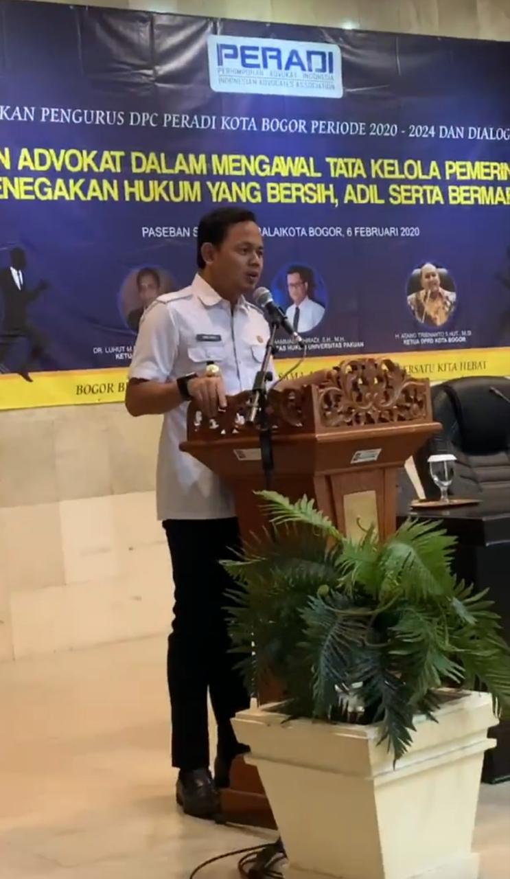 BOGORONLINE.com, Bogor Tengah – Wali Kota Bogor Bima Arya menghadiri pelantikan pengurus Dewan Pimpinan Cabang (DPC) Perhimpunan Advokat Indonesia (Peradi) Kota Bogor periode 2020-2024 di ruang Paseban Sri Baduga, Balaikota Bogor, Kamis (6/2/2020).