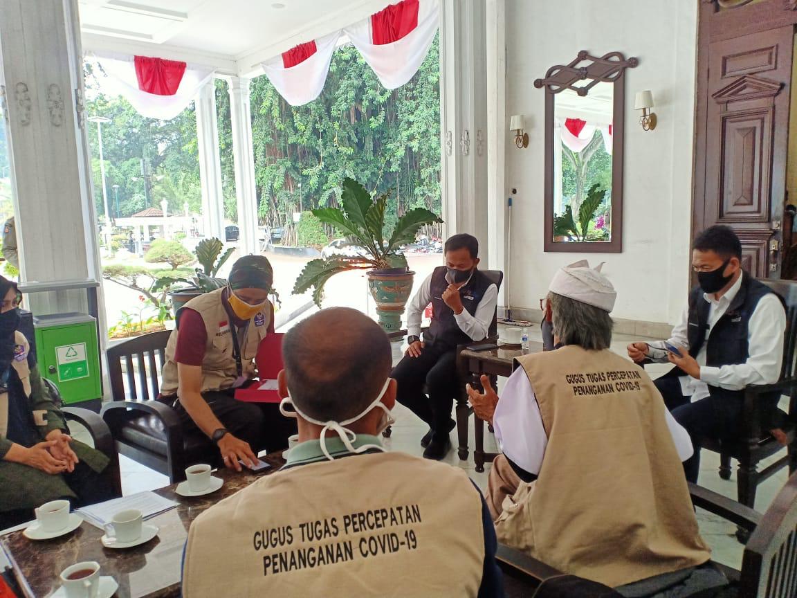 BOGORONLINE.com, Kota Bogor – Sebanyak 32 orang relawan Satgas Penanganan Covid-19 Pusat akan segera bergabung dengan tim satgas Penanggulangan Covid-19 Kota Bogor. Hal ini diketahui dari audiensi Tim Koordinator Relawan Satgas bersama Wali Kota Bogor Bima Arya, di Teras Balai Kota, Jalan Ir H. Juanda, Kota Bogor, Kamis (3/9/2020).