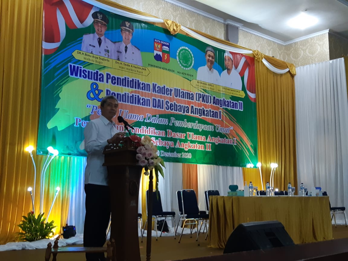 BOGORONLINE.com, Bogor Timur – Majelis ulama indonesia (MUI) Kota Bogor melaksanakan wisuda pendidikan kader ulama (PKU) angkatan 2 dan pendidikan dai sebaya angkatan 1 dengan mengusung tema peran ulama dalam pemberdayaan umat di gedung PPIB Kota Bogor, Rabu (20/12/20).