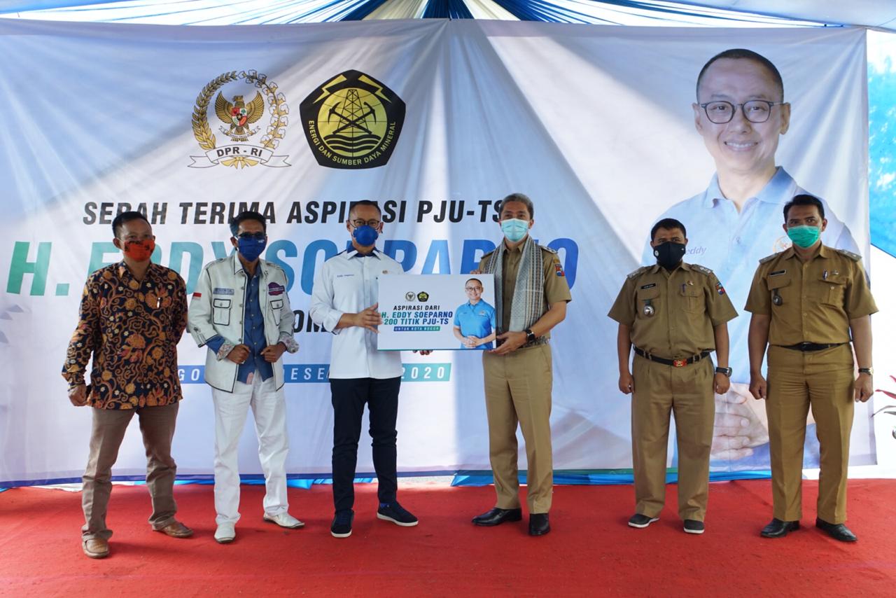 BOGORONLINE.com, Kota Bogor – Sebanyak 200 Penerangan Jalan Umum Tenaga Surya (PJU-TS) diserahkan Wakil Ketua Komisi VII DPR RI Eddy Soeparno kepada Pemerintah Kota (Pemkot) Bogor di Cimanggu Baratha, Tanah Sareal, Kota Bogor, Selasa (29/12/2020). Serah terima PJU-TS ini dalam rangka memenuhi aspirasi masyarakat kepada Eddy Soeparno.