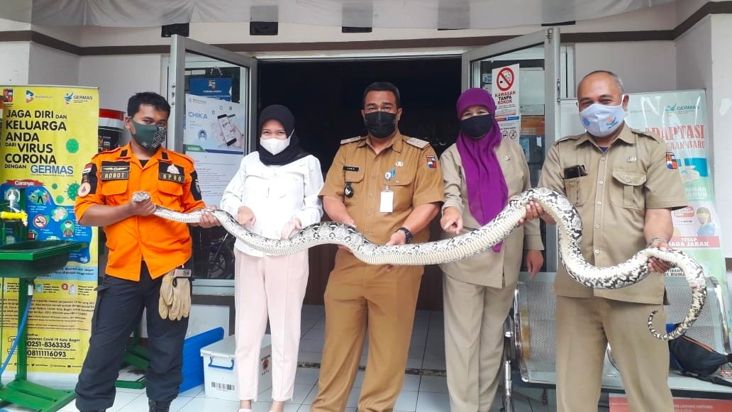 Kini, ular bermotif batik warna coklat keemasan itu telah dievakuasi oleh petugas Badan Penanggulangan Bencana Daerah (BPBD) Kota Bogor.