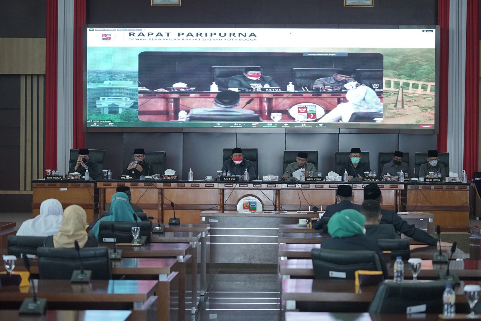 Di tempat yang sama, Ketua DPRD Kota Bogor, Atang Trisnanto selaku pemimpin rapat paripurna membuka rapat paripurna yang digelar secara hybrid.