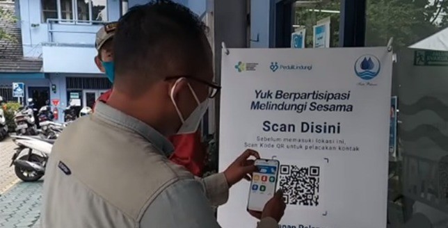 Rino menambahkan, posisi scan barcode ditempel tepat pada pintu masuk Perumda Tirta Pakuan. Dengan penggunaan aplikasi PeduliLindungi, mereka yang hendak masuk diwajibkan melakukan check in scan dimana sudah terkoneksi dengan aplikasi.