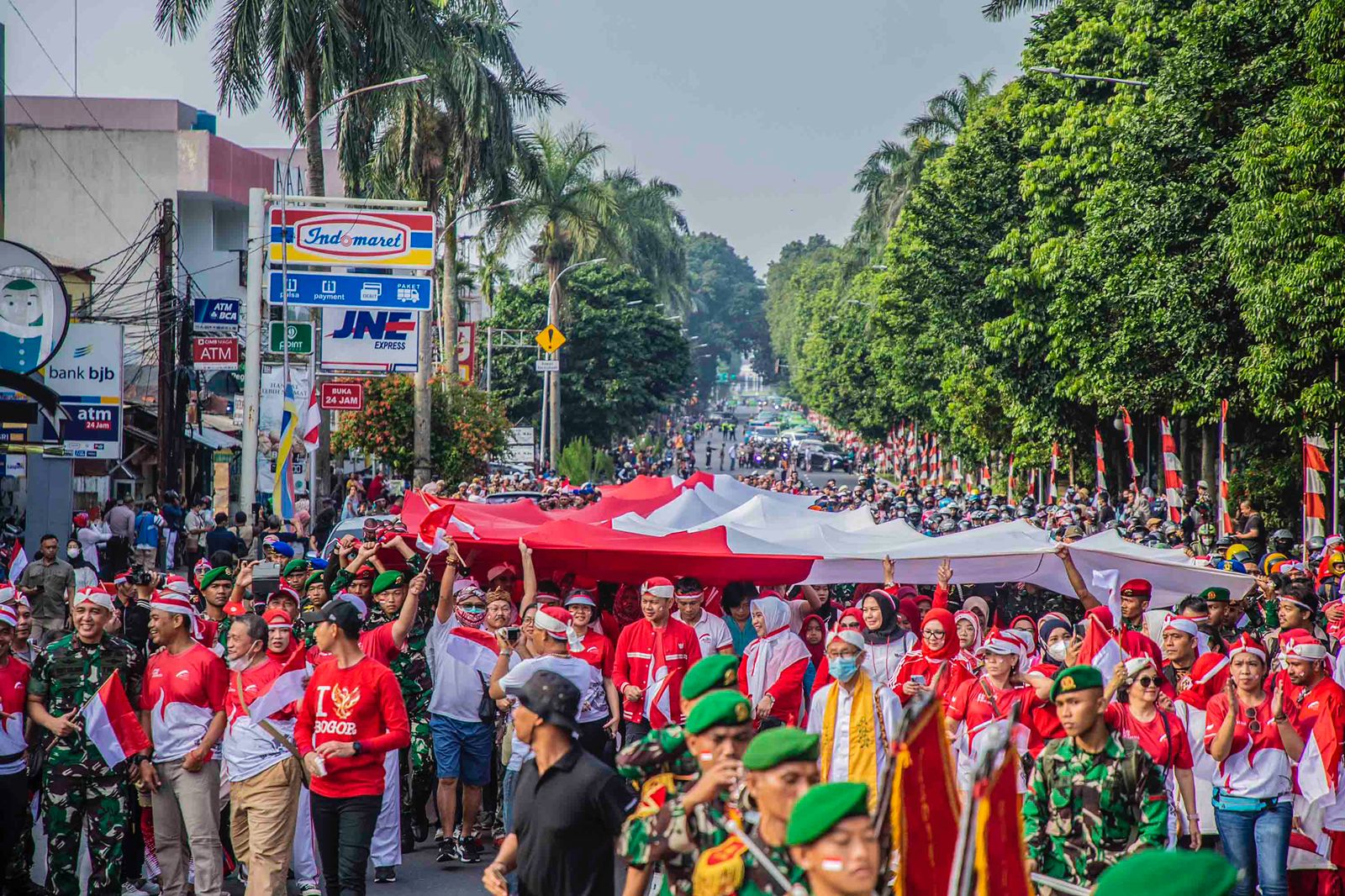BOGORONLINE.com – Wali Kota Bogor, Bima Arya secara resmi melepas kirab bendera sepanjang 100 meter dalam rangkaian acara Festival Merah Putih (FMP) 2022 di plaza Balai Kota Bogor, Minggu (28/8/2022) pagi.