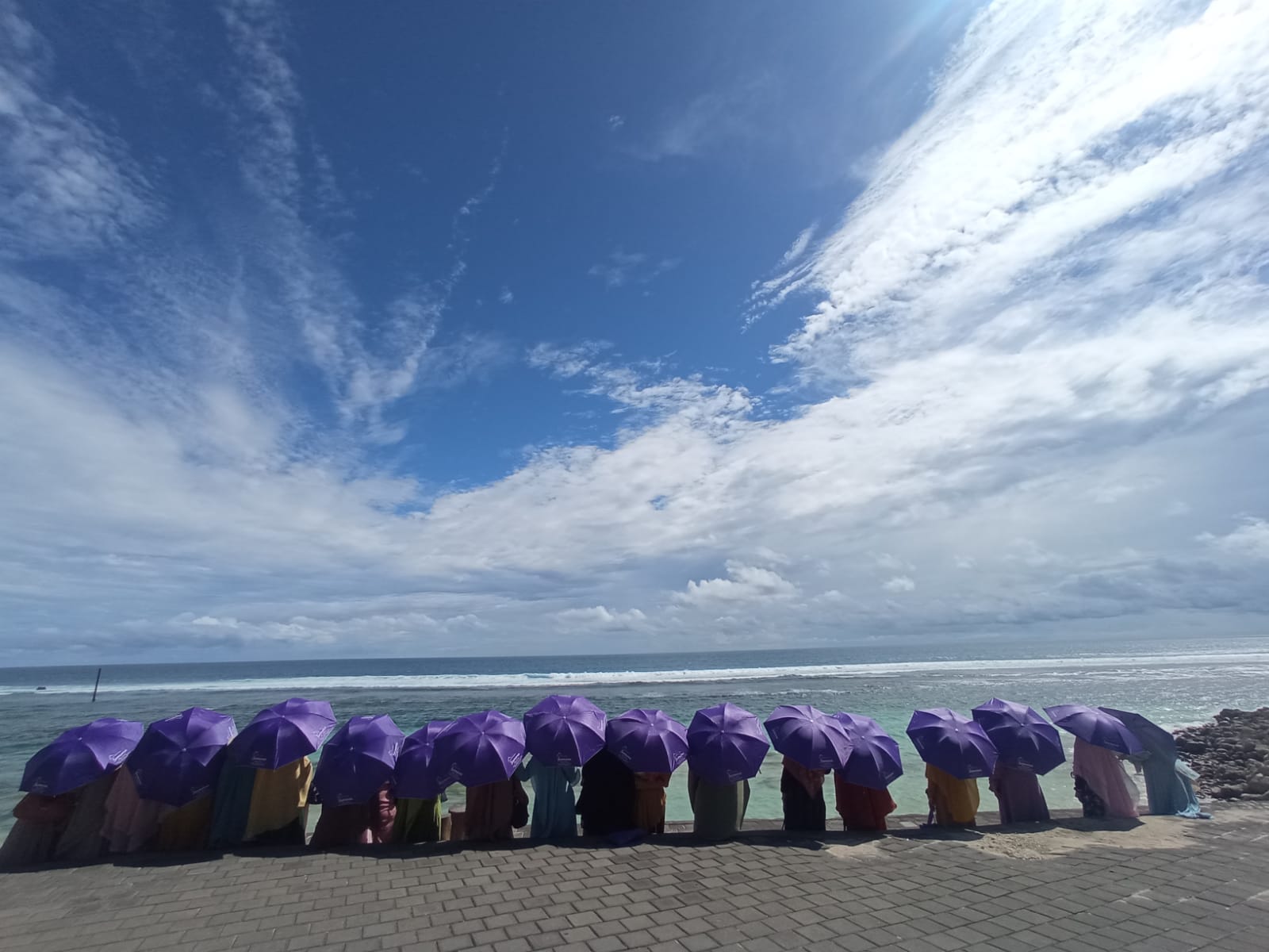 Salah satu pantai yang dikunjungi rombongan adalah Pantai Melasti yang berada di Kecamatan Kuta.