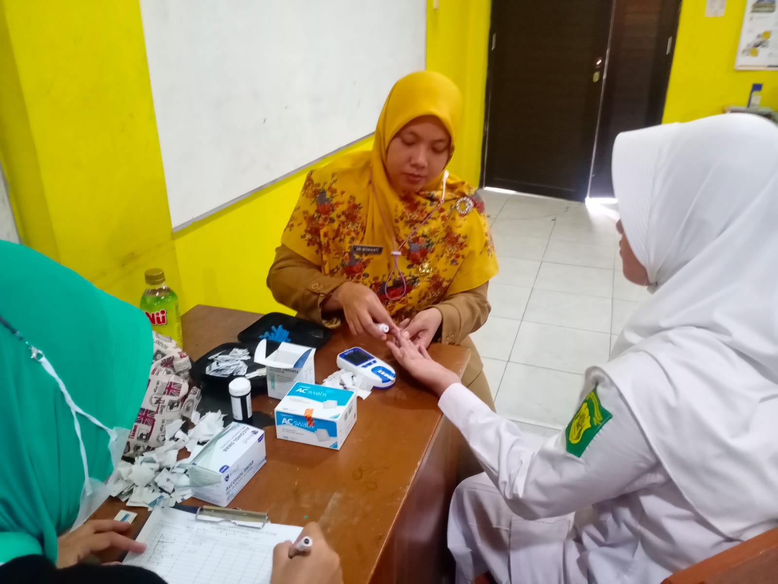 Cileungsi- 166 Siswi SMA Muhammadiyah Cileungsi melakukan pemeriksaan hemoglobin dengan sangat antusias. “Tujuan pemeriksaan hb pada siswi Kelas X adalah untuk mengetahui kadar sel darah merah khususnya pada remaja puteri, dan juga sebagai evaluasi ada atau tidaknya pengaruh pemberian obat fe(tambah darah) yang sudah di bagikan 3 bulan yang lalu.” ujar Sri Wijayanti, A.M.Keb. selaku team pemeriksa dari Puskesmas Cileungsi.