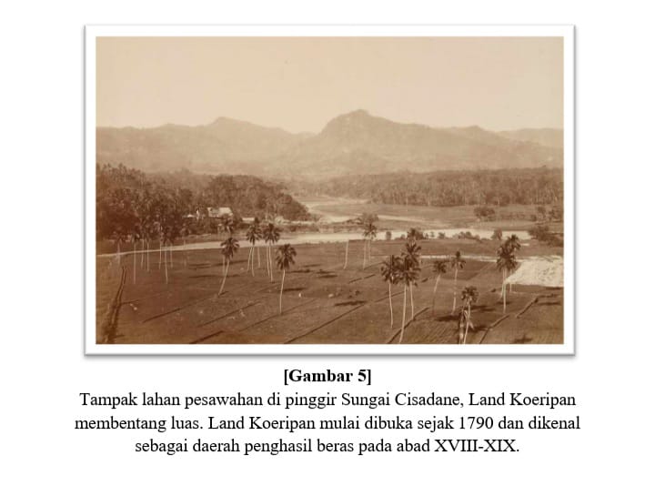 Hanya ada sehelai lukisan tangan yang menunjukkan bahwa kawasan Land Koeripan sudah ditanami pohon kelapa dan padi. Lokasi itu terletak di seberang Sungai Cisadane (Tjidani). Tampak dalam gambar itu beberapa rumah atau landhuis dan dua buah rakit bambu (getek) sedang dipakai di atas sungai.