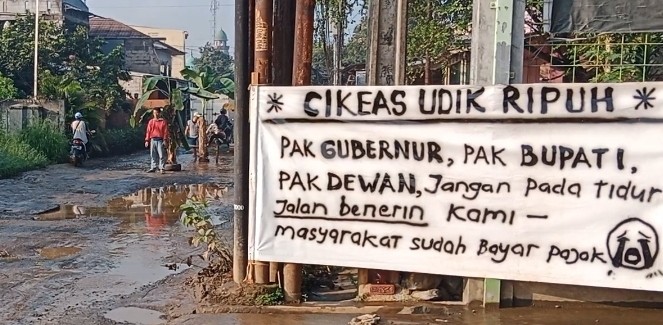 Terkait demo Jalan Rusak Cikeas Udik Kisruh Kecamatan Gunung Putri, Kabupaten Bogor, Kepala Desa (Kades)