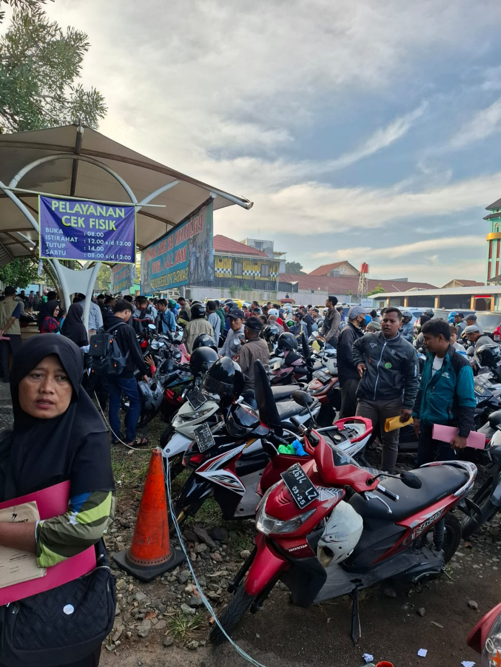 foto: Penampakan situasi pelayanan di Samsat Kabupaten Bogor, yang mengalami lonjakan hingga 3 kali lipat dari biasanya, pada Senin (14/04/2025). (Doc)
