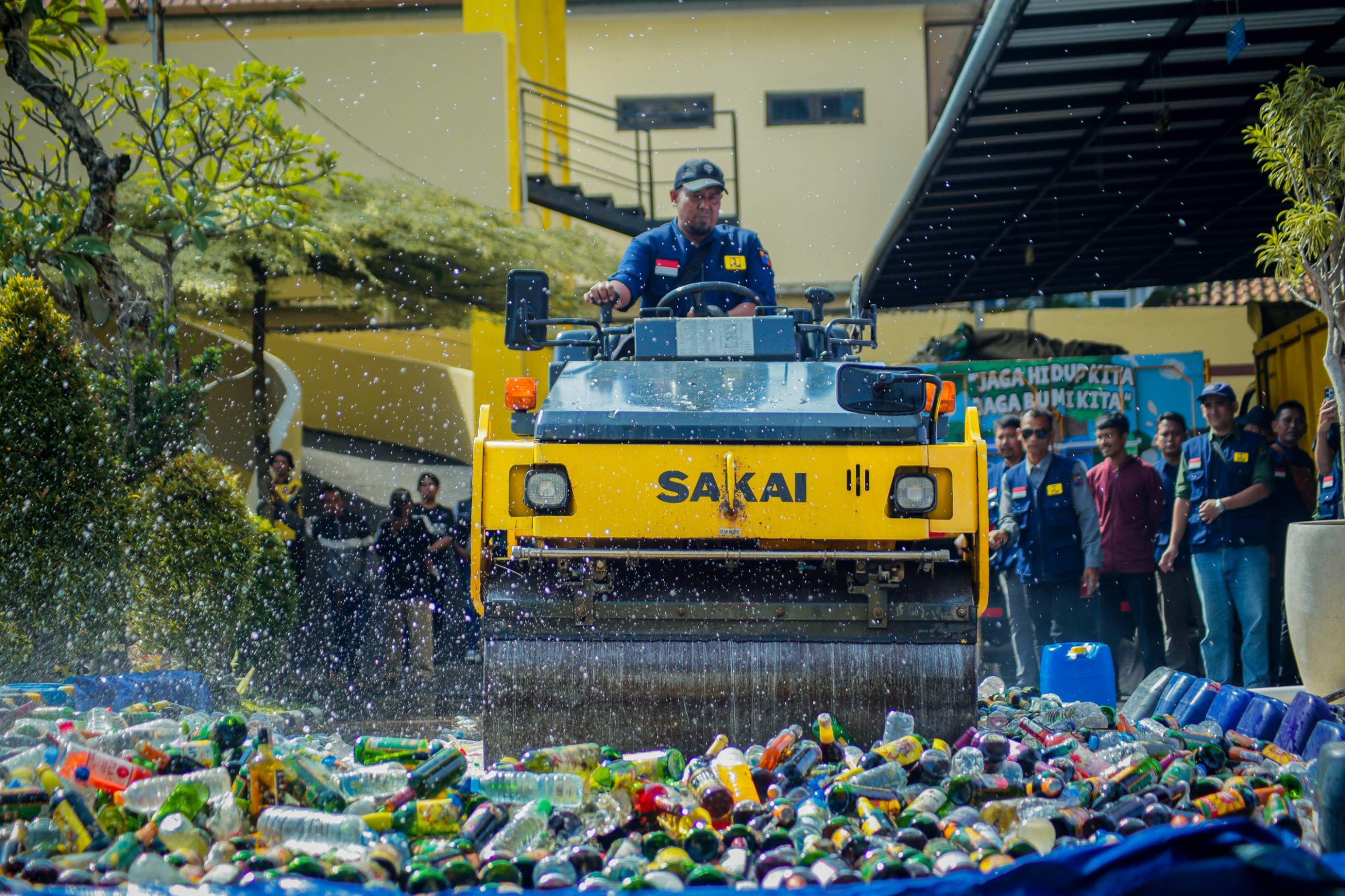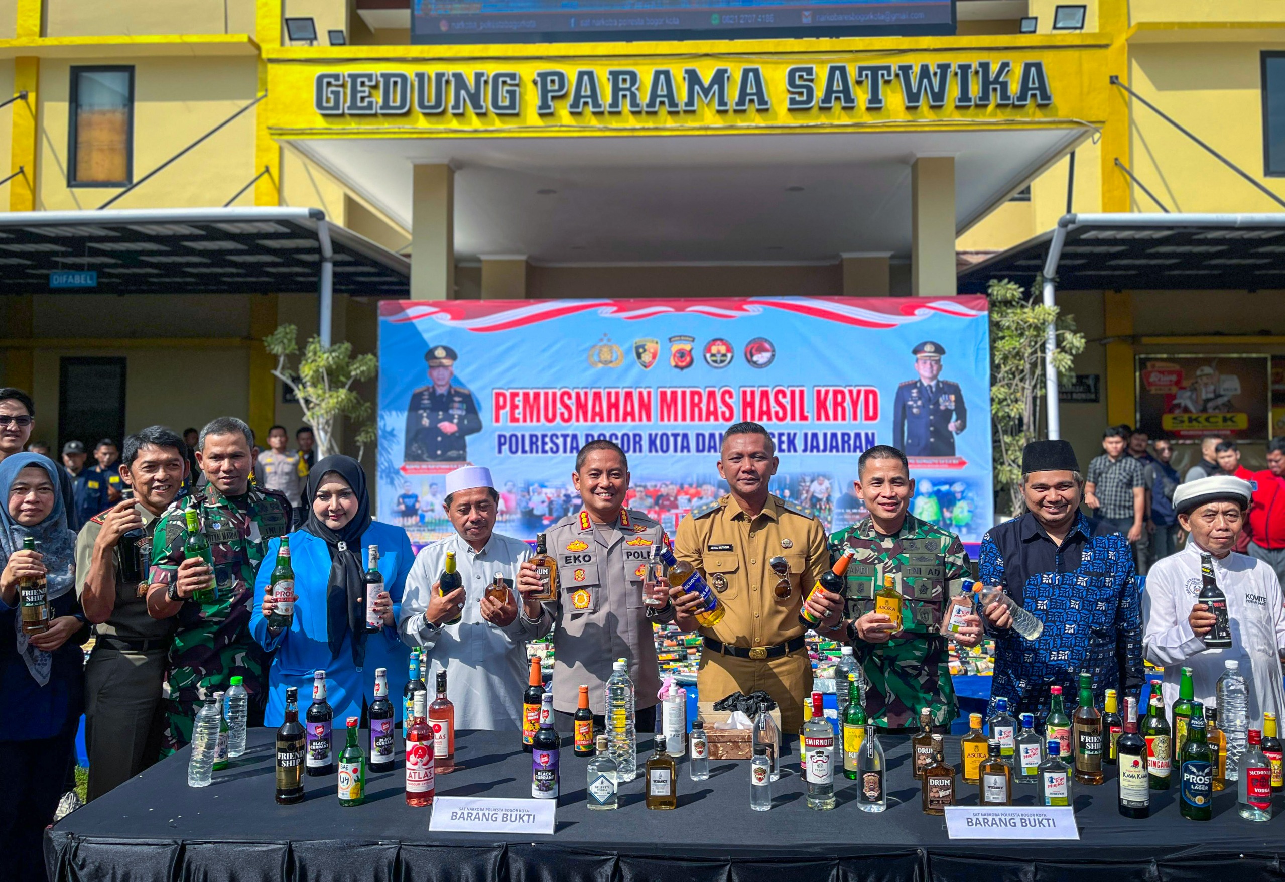 Kapolresta Bogor Kota, Kombes Pol. Eko Prasetyo menyampaikan total 17.109 botol miras yany dihancurkan merupakan hasil operasi yang dilakukan selama tiga bulan terakhir.