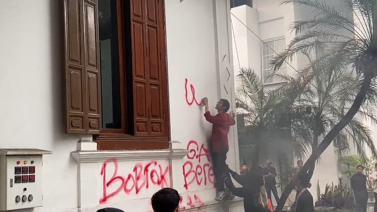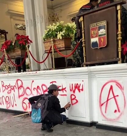 BOGORONLINE.com – Aksi demonstrasi di komplek Balaikota Bogor diwarnai dengan aksi vandalisme pada bangunan cagar budaya, Kamis (21/8/2025).