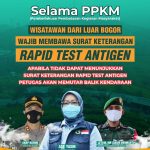 Libur Panjang Ingat ! Liburan Ke Bogor Wajib Bawa Surat Rapid AntigenBogor Raya|11 February 202111 February 2021by Aldi Supriyadi BOGORONLINE.COM, – Ingat baik-baik, bagi Anda yang ingin mengisi waktu libur