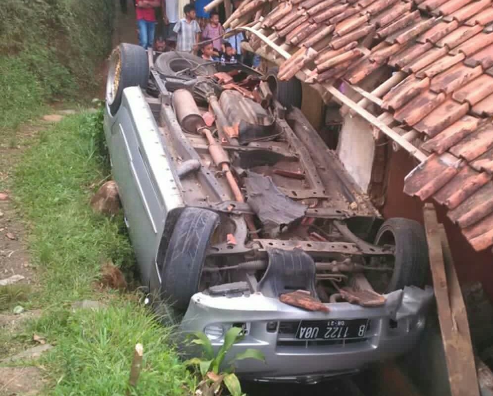Informasi yang diserap bogorOnline.com, kejadian diatas bermula saat si pengendara bernama, Makmun hendak mengantarkan kerabatnya. Menuju, Desa Sukaharja. Setalah itu pulang bersama keluarganya yang berjumlah lima orang. Setibanya dilokasi si sopir bermaksud menghindari lubang namun menabrak batu dan langsung hilang keseimbangan membuat mobil jatuh menimpa rumah warga.