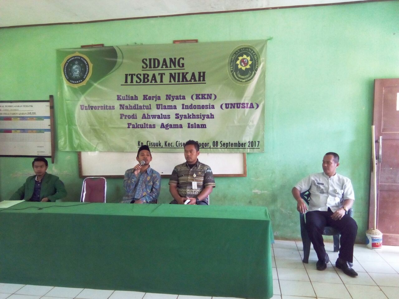 Mahasiswa Universitas Nahdlatul Ulama Indonesia (UNUSIA), Kabupaten Bogor, Prodi Ahwalus Syaksiyyah. Menyelenggarakan sidang itsbat nikah yang dilaksanakan di Kampung Cisuuk, DesaCibeteung Udik, Kecamatan Ciseeng yang terdiri dari 90 peserta dari berbagai RT.