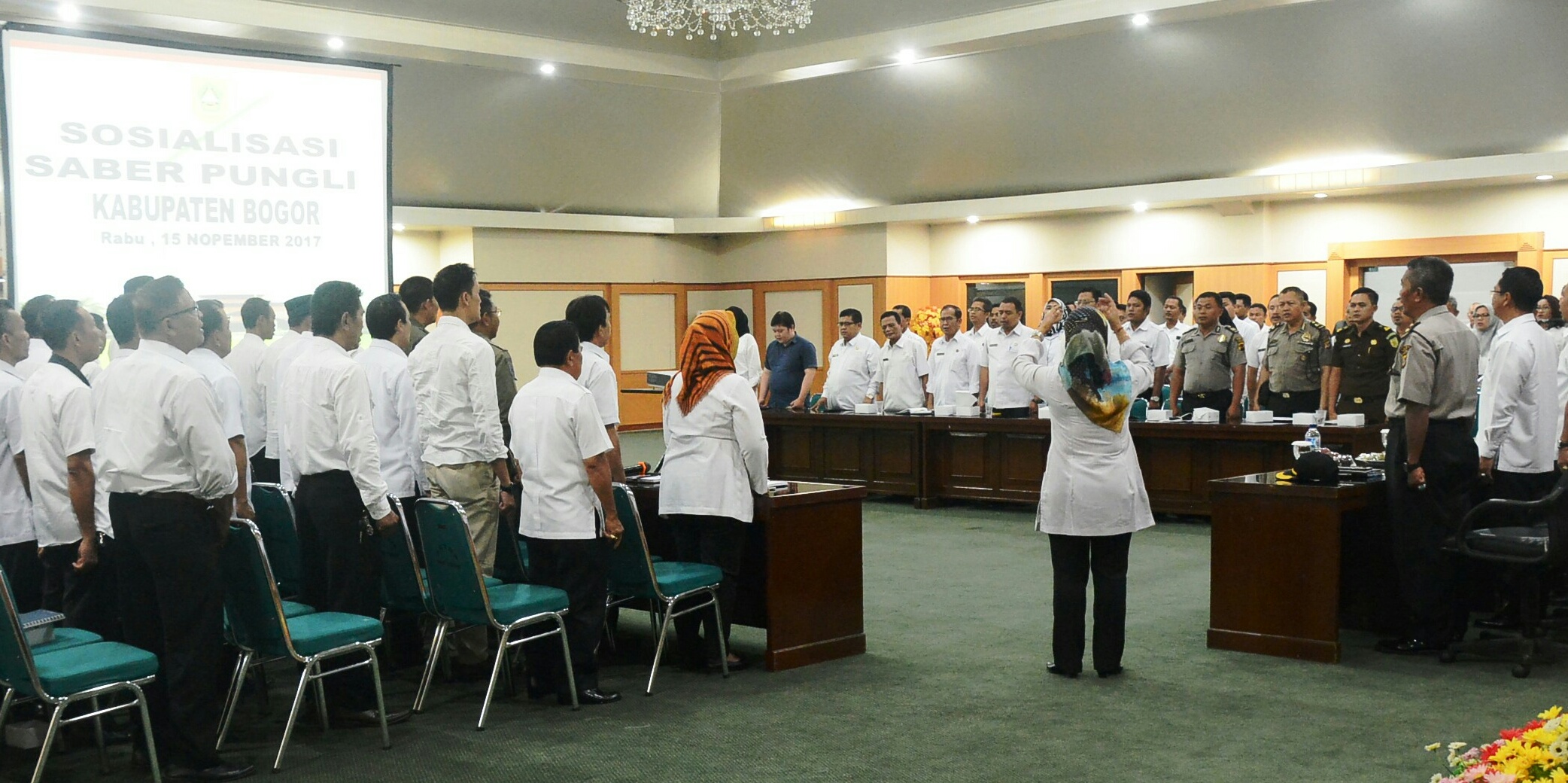 Guna mencegah terjadinya penyimpangan dan kekeliruan yang berakibat hukum serta merugikan kepentingan negara dan masyarakat seiring dengan semakin meningkatnya volume penyelenggaraan pemerintah daerah. Pemerintah Kabupaten Bogor menggelar sosialisasi sapu bersih pungutan liar (saber pungli) dimana pada edisi kali ini berfokus bagi para kepala desa/lurah se-Kabupaten Bogor bertempat di Gedung Serbaguna 1, pada Rabu (15/11).