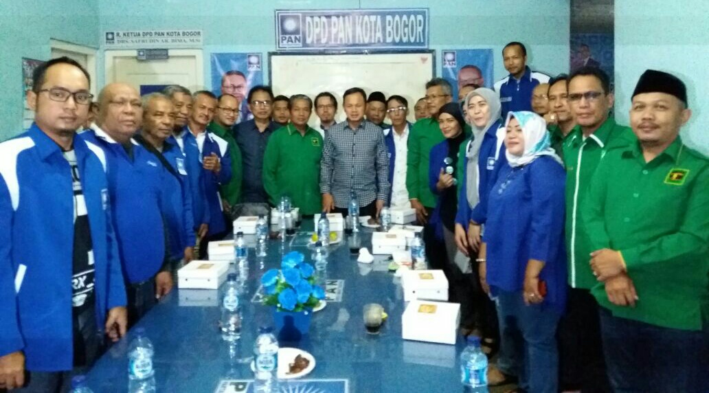 Ketua DPC PPP Zaenul Mutaqin didampingi Wasekjen DPP PPP Andi Surya Wijaya, anggota DPRD Kota Bogor Fraksi PPP Achmad Aswandi, Riana Puspitasari, Ardiansyah, beserta jajaran pengurus DPC serta relawan, datang ke kantor DPD PAN diterima oleh Wakil Ketua DPP PAN Bima Arya, Ketua DPD PAN Kota Bogor Safrudin serta jajaran pengurus.