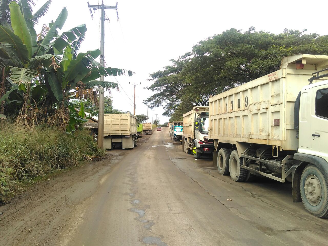 TUNGGU JAM TAYANG, PARKIR TRUK TAMBANG MAKIN PANJANG