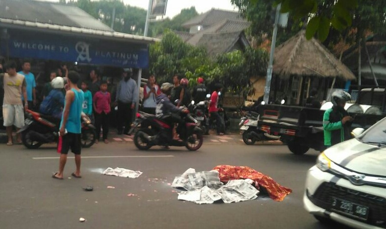bernama Ghazi Adhi (23) meregang nyaw, setelah mengalami kecelakaan lalulintas di Jalan Raya Suka hati, Kecamatan Cibinong, Kabupaten Bogor