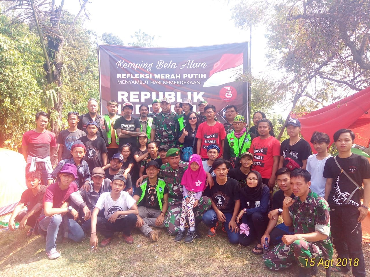 BOGOR – Menyambut HUT RI ke 73. Sebanyak 50 orang dari berbagai komunitas pencinta alam menggelar Camping Bela Alam Refleksi Merah Putih di komplek Gunung Kapur, Kampung Bojongtangkas Desa Ciampea, Kecamatan Ciampea, Kabupaten Bogor.