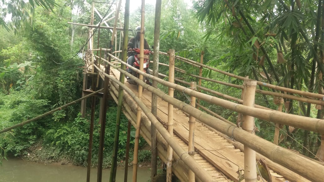 “Waktu itu jembatan ini belum pakai papan jadi semuanya masih menggunakan bambu. Karena makin lama makin rapuh, jadi pas dilewati pakai motor bambunya patah.” Ungkapnya.