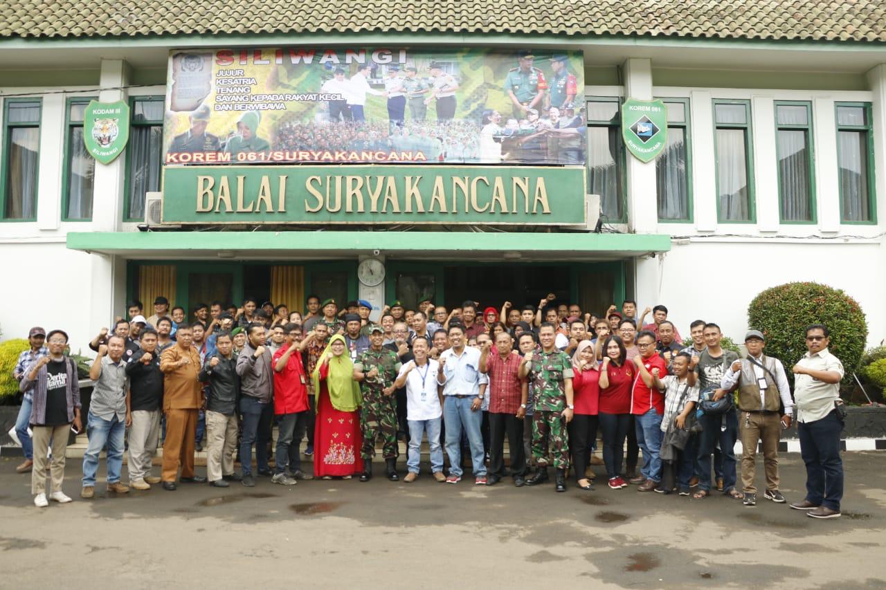 “kegiatan hari ini adalah bentuk upaya dalam meningkatkan sinergitas TNI dan media, mencegah berita hoax sehingga akan terwujud situasi yang aman, harmonis dan damai di wilayah kerja Korem 061/Surya Kencana,” papar Kolonel (Inf) Novi Helmy Prasetya, Kamis (21/2/19).