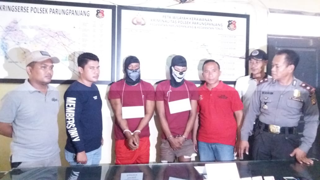 Dua orang tersangka bernama B (38) warga Kp. Cirarab RT 002/001 Desa Cirarab, Kecamatan Legok Tangerang sedangkan, N (28) warga Kp. Cibunar Koko RT 06/01 Desa Cibunar Kecamatan Parungpanjang, mereka kini harus meringkuk di dalam penjara.