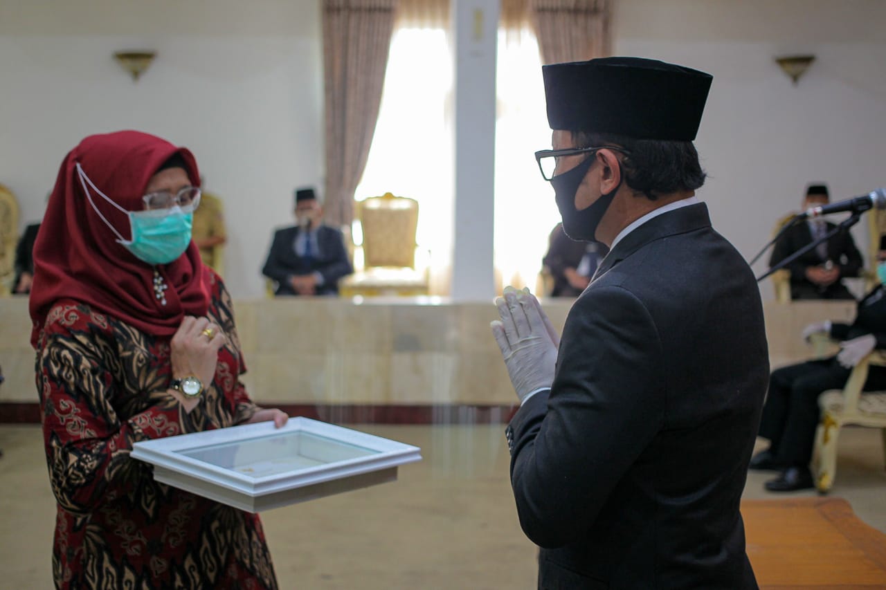 BOGORONLINE.com, Kota Bogor – Wali Kota Bogor Bima Arya menandatangani dan menyerahkan piagam penghargaan kepada keluarga Almarhum drg. Yuniarto Budi Santosa M, Kes atas dedikasinya dalam melaksanakan tugas kedinasan untuk penanganan Covid-19 di Kota Bogor. Almarhum pun akan memperoleh kenaikan pangkat Anumerta setingkat lebih tinggi.