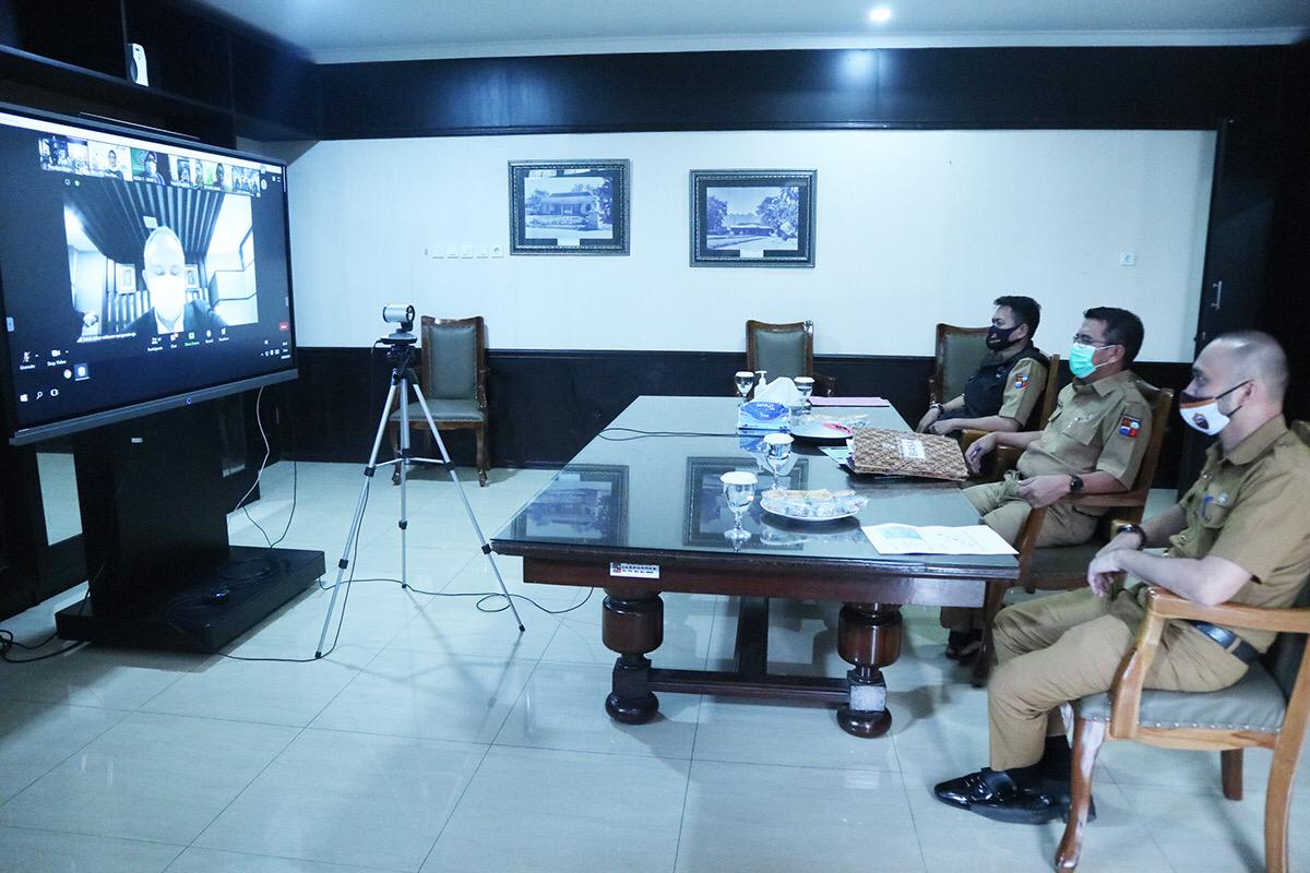 BOGORONLINE.com, Kota Bogor – Sekretaris Daerah Kota Bogor Ade Sarip Hidayat mengikuti pertemuan secara virtual antara Pemerintah Provinsi Jawa Barat dan Tim Nasional Evaluasi Penyelenggaraan Pemerintahan Daerah (EPPD) serta pemerintah kabupaten/kota se-Jawa Barat. Tampak Ade Sarip didampingi Asisten Pemerintahan Irwan Riyanto di ruang Paseban Surawisesa, Balai Kota Bogor, Senin (7/9/2020).