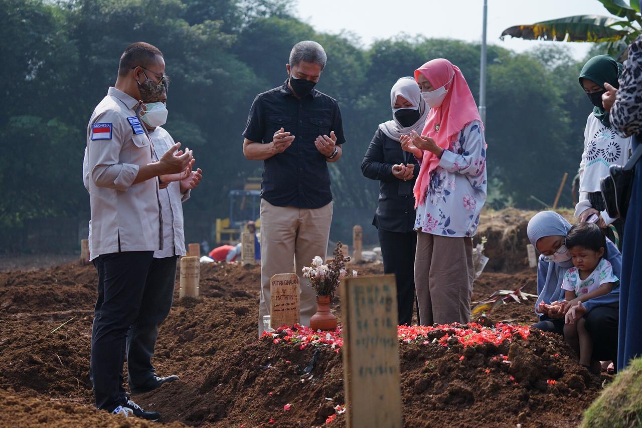 “Namun demikian, meski sudah dibantu alat berat, tenaga pemakaman juga ternyata mengalami kelelahan, baik fisik maupun mental. Sehingga tadi kita memberi dukungan moril kepada penggali kubur dan petugas pemakaman di TPU Situ Gede,” terang Dedie.