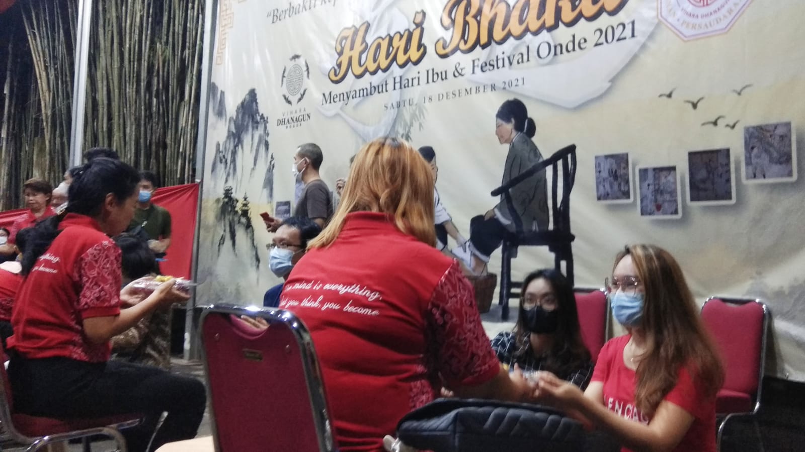 BOGORONLINE.com, Bogor Tengah – Menyambut Hari Ibu dan Festival Onde, Himpunan Persaudaraan Umat (HPU) Vihara Dhanagun menggelar Hari Bhakti di halaman Vihara Dhanagun, Babakan Pasar, Bogor Tengah, Kota Bogor, Sabtu (18/12/2021) malam.
