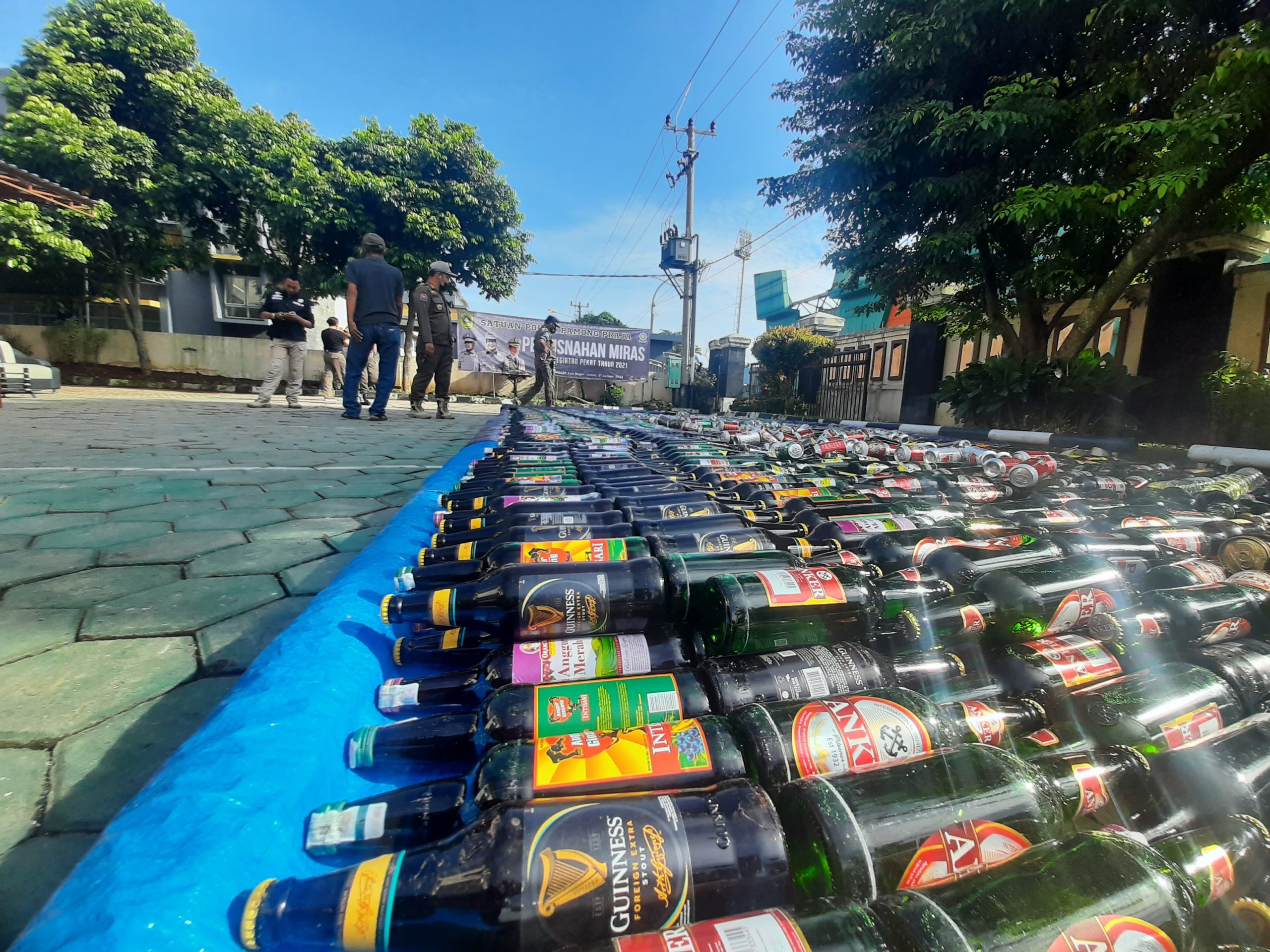 Barang haram itu disita dari pelaku usaha di wilayah Kabupaten Bogor karena tidak memiliki izin edar dan dimusnahkan sesuai dengan Peraturan Bupati Nomer 81 Tahun 2021 pasal 11 ayat 4 huruf b “Penertiban sebagaimana dimaksudkan pada ayat (1) huruf c, untuk penyedia usaha yang menyimpan, memproduksi, mengedarkan, menimbun dan mengoplos dan/ atau menyajikan minuman yang memabukkan atau berbahaya tanpa ijin dari pejabat yang berwenang. dilakukan penindakan berupa : 1. Proses yustisial; dan atau pemusnahan barang bukti”.