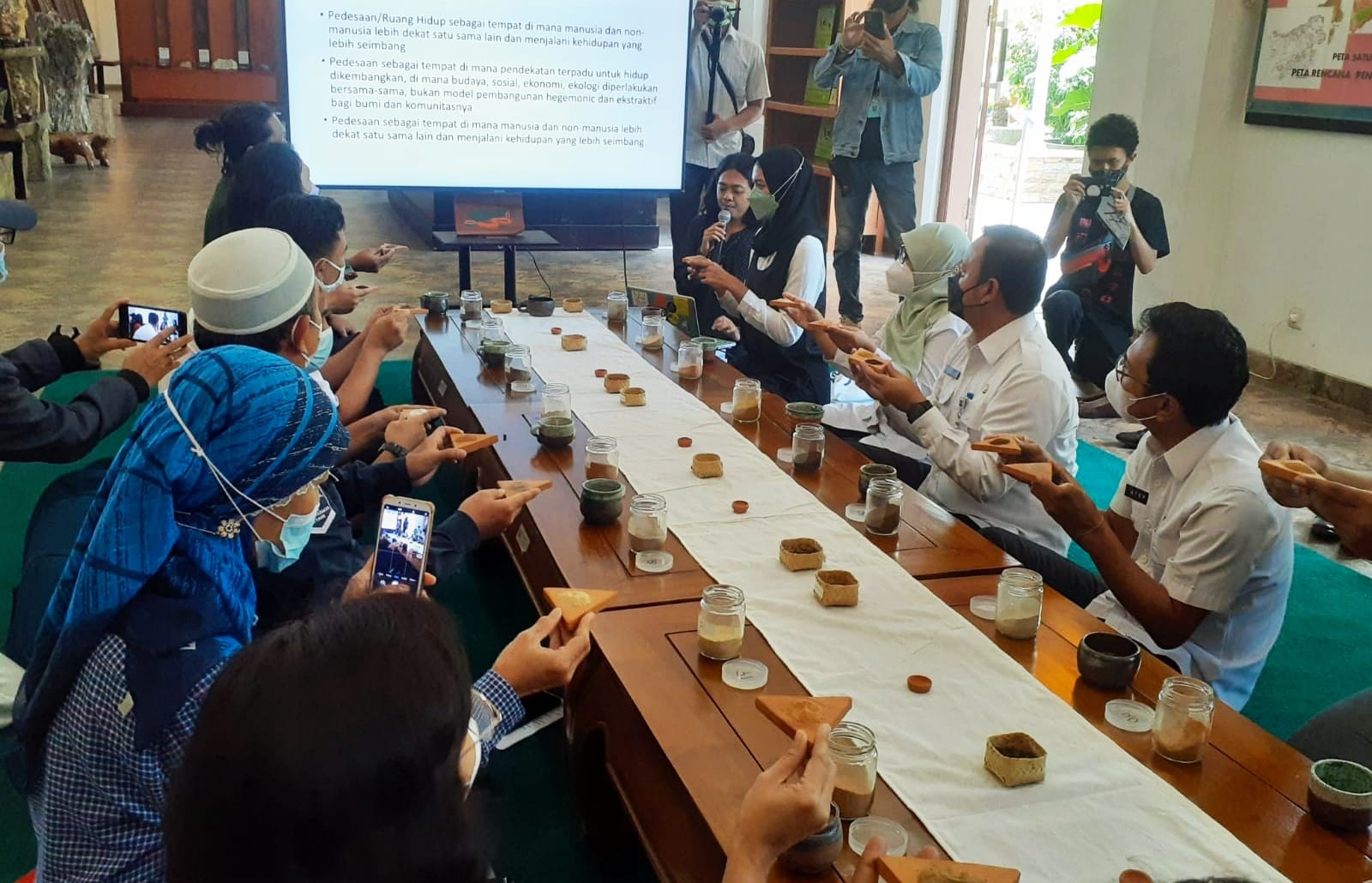 Pada konferensi Para Tanah dihadirkan juga berbagai material tanah yang dibawa dari berbagai wilayah di Indonesia dan dunia seperti tanah asal Ethopia, Kolumbia dan Amazon.