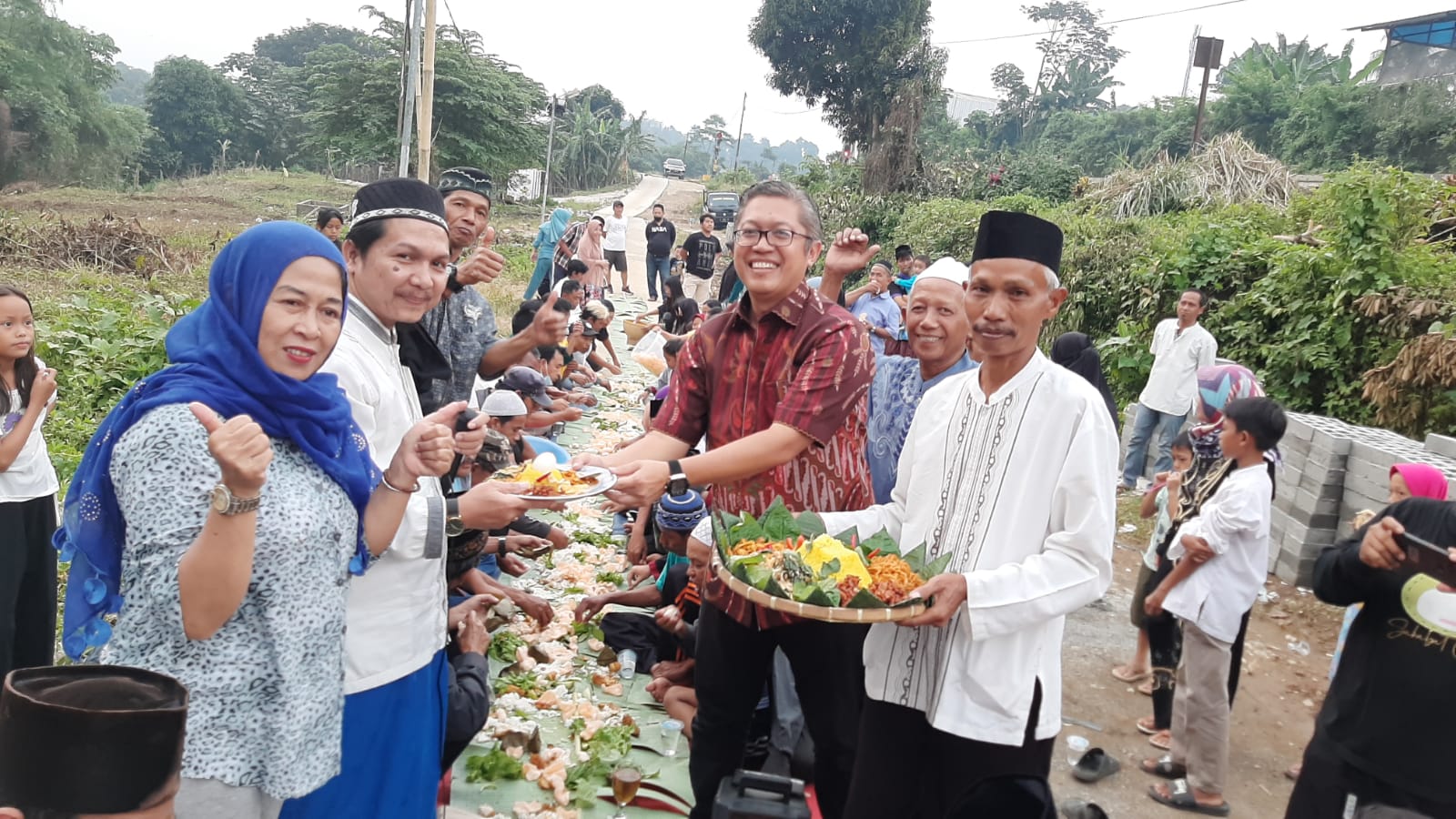 Sekitar 300 warga bersama Wakil Ketua DPRD Kota Bogor, Dadang Iskandar Danubrata menggelar selametan dengan tumpengan dan ngaliwet bersama di akses jalan yang dibuatkan oleh PT. KAI dan PT. Nidya Karya (NK) selaku kontraktor, Rabu (22/6/2022).