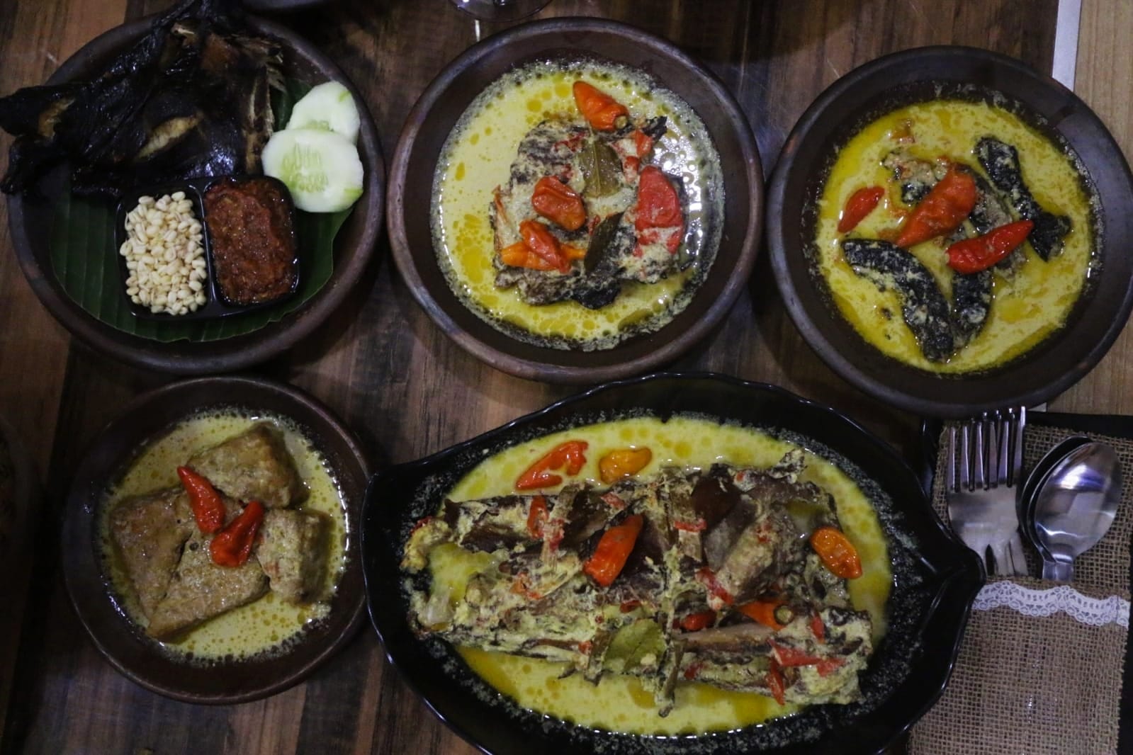 BOGORONLINE.com – Aroma daging ikan asap menyeruak di setiap bagian kepala ikan Manyung. Dagingnya lembut berpadu rasa pedas nan gurih di bumbu mangut membuat lidah tak ingin berhenti menikmati kelezatannya. Lezatnya mangut kepala Manyung dengan kuah santan ini rasanya bisa membuat Anda ingin datang kembali ke Resto Mangot Maooot Bogor.