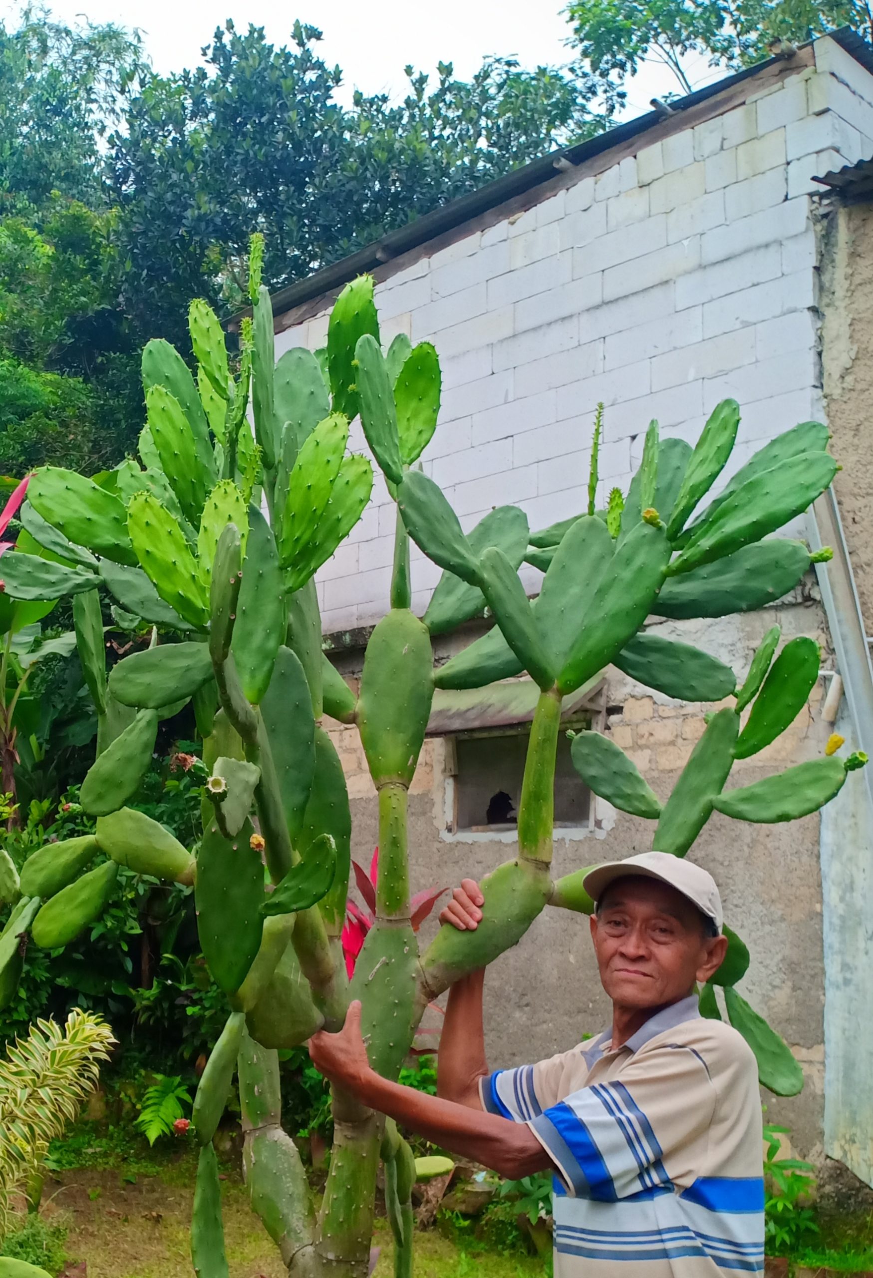 Foto : petani kaktus di Desa Banjar Waru, Kecamatan Ciawi, Kabupaten Bogor, Didih Sutrisno, memperlihatkan pohon kaktus yang sudah berusia puluhan tahun.