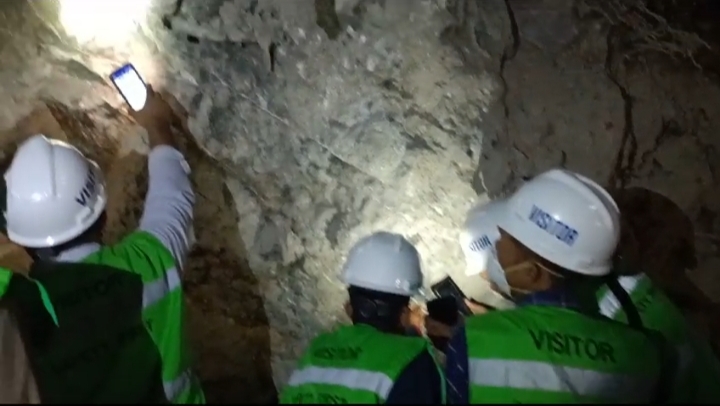 Terlihat, saat belasan anggota PWI Kabupaten Bogor yang menjadi peserta Kunker ke PT. Antam Tbk, UBPE Pongkor Bogor, saat mendapat kesempatan melihat secara langsung lokasi lubang tambang dengan melihat-lihat baru yang terisi kandungan emas murni berkadar 24 karat.