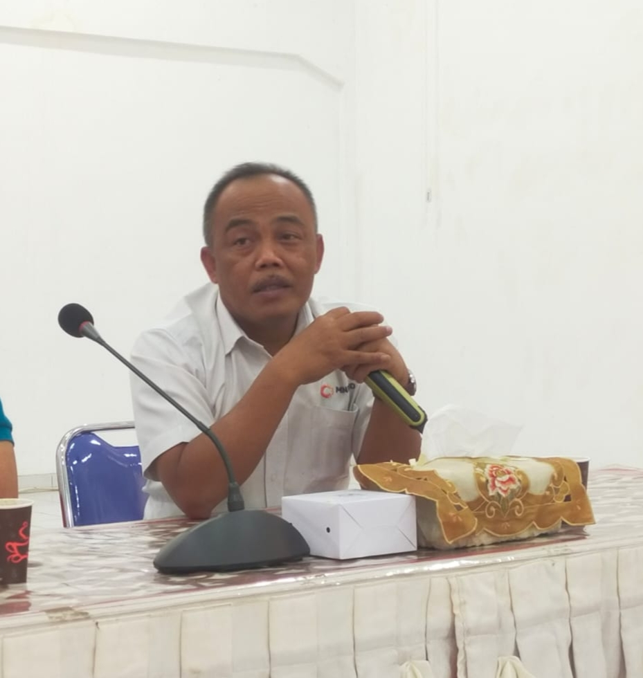 CSR Manager PT Antam Tbk, UBPE Pongkor Bogor, Arif Rahman Saleh, saat memberikan informasi kepada peserta Kunker PWI Kabupaten Bogor, di Aula Kantor Admin perusahaan tersebut, pada Selasa (15/8/23).