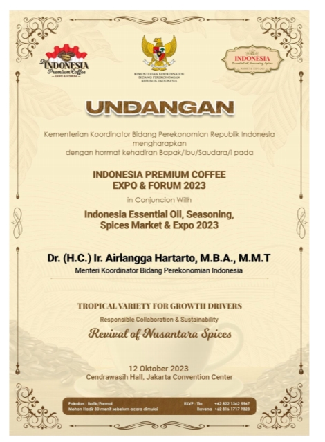 Event Indonesia Premium Coffee Expo & Forum 2023 dan Indonesia Essential Oil, Seasoning & Spices Market & Expo