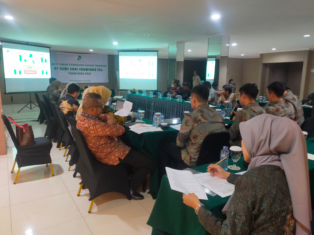 BOGORONLINE.COM – Perseroan Terbatas (PT) Dewi Shri Farmindo, Tbk yang terletak di Cianjur, Jawa Barat, melaksanakan Rapat Umum Pemegang Saham (RUPS) tahun buku 2023, bertempat di Palace Hotel Cipanas, Kabupaten Cianjur, pada Jumat (14/6/2024).