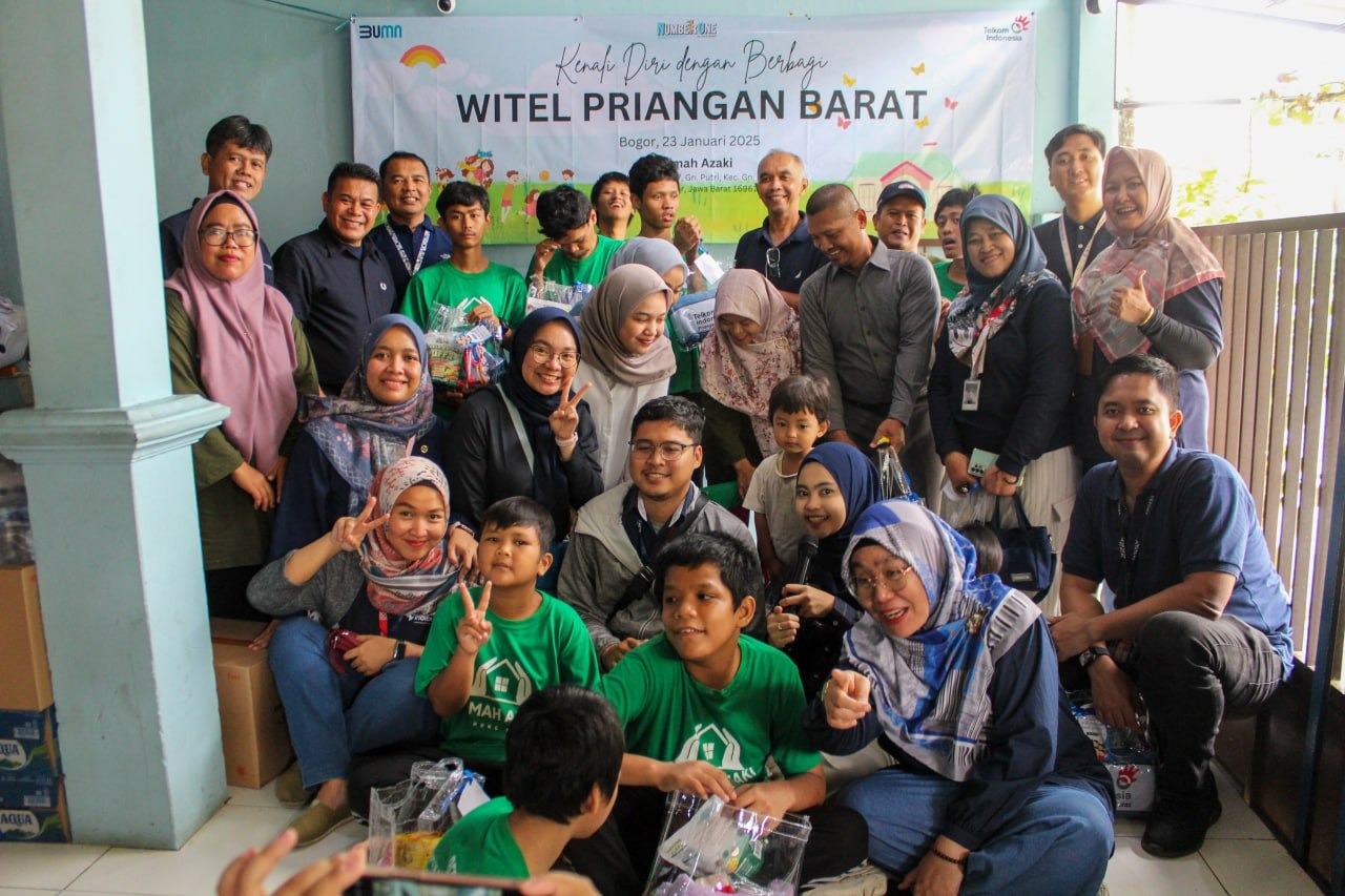 Gunung Putri – Kegiatan Witel Priangan Barat Berbagi kali ini dilaksanakan di Rumah Azaki Gunung Putri yang bertajuk “Kenali Diri dengan Berbagi”. Kegiatan ini melibatkan pemberian donasi dan makan bersama yang dihadiri oleh General Manager Witel Priangan Barat Dode Suparaman serta karyawan Witel Priangan Barat. Acara ini merupakan inisiatif awal tahun yang bertujuan untuk meningkatkan rasa empati dan tanggung jawab sosial di kalangan karyawan.