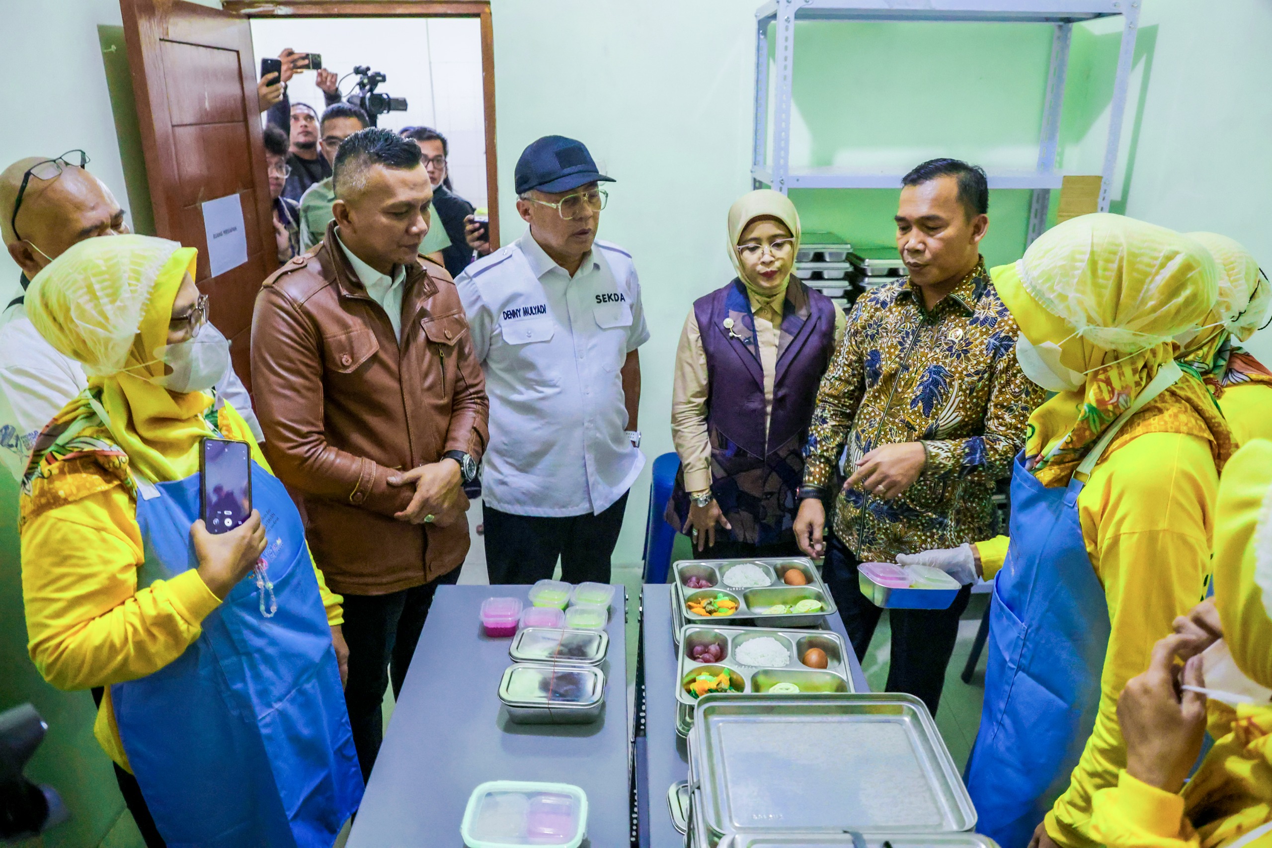Didampingi Wakil Wali Kota Bogor, Jenal Mutaqin, Wihaji meninjau langsung proses pengolahan makanan hingga pengemasan, sebelum didistribusikan kepada keluarga yang masuk dalam kategori berisiko stunting.