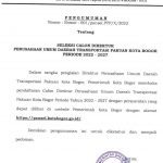 Pemkot Bogor Buka Pendaftaran Calon Direktur Perumda Transportasi PakuanHeadline, Kota Bogor|31 October 2022by RZ BunaiBOGORONLINE.com – Pemerintah Kota (Pemkot) Bogor melalui Panitia Seleksi (Pansel) membuka pendaftaran