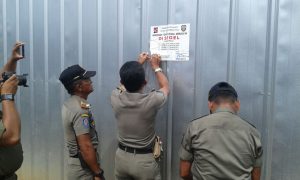 Akhirnya Satpol PP Segel Transmart Tajurberanda, Kota Bogor|5 June 2018by RZ BunaiSelain Pasang Satpol PP Line, Sejumlah Gerbang Digembok oleh Petugas bogorOnline.com Satuan